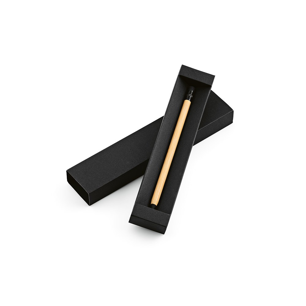 Dieser aus Bambus gefertigte Kugelschreiber ist eine Ode an die Umweltfreundlichkeit. Er ist ein endloser Stift mit Radiergummi, der elegant in einer Geschenkbox aus Recyclingpapier geliefert wird.