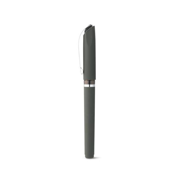 Kugelschreiber aus ABS mit schwarzschreibender Mine, Kappe, Metallclip und gummierter Oberfläche. Inklusive Gel-Nachfüllung. ø12 x 140 mm