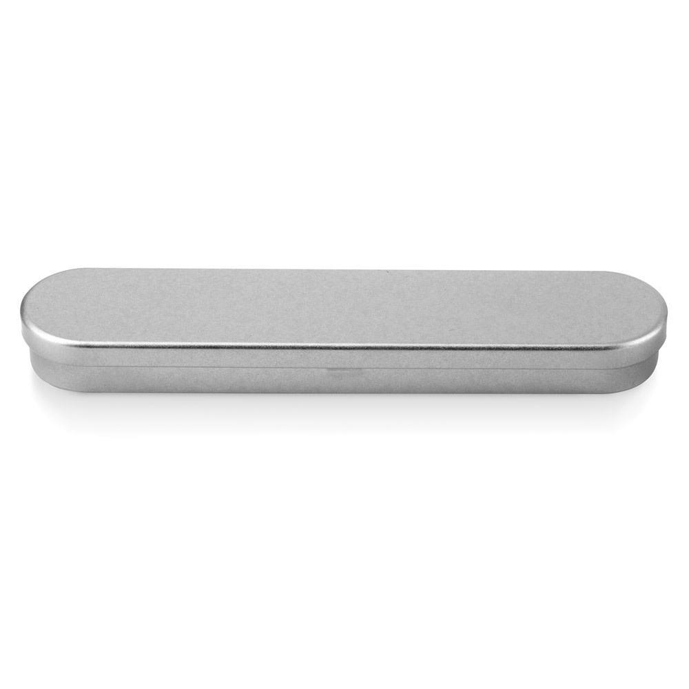 Multifunktionskugelschreiber aus Metall mit blauschreibender Mine und Clip. Dieser Kugelschreiber besteht aus einer Minitaschenlampe mit LED Licht, einem Laserpointer und hat eine Touchpen-Funktion. Enthält 3 LR41-Batterien. Geliefert in einem Geschenketui aus Metall. ø10 x 125 mm | Etui: 178 x 38 x 19 mm