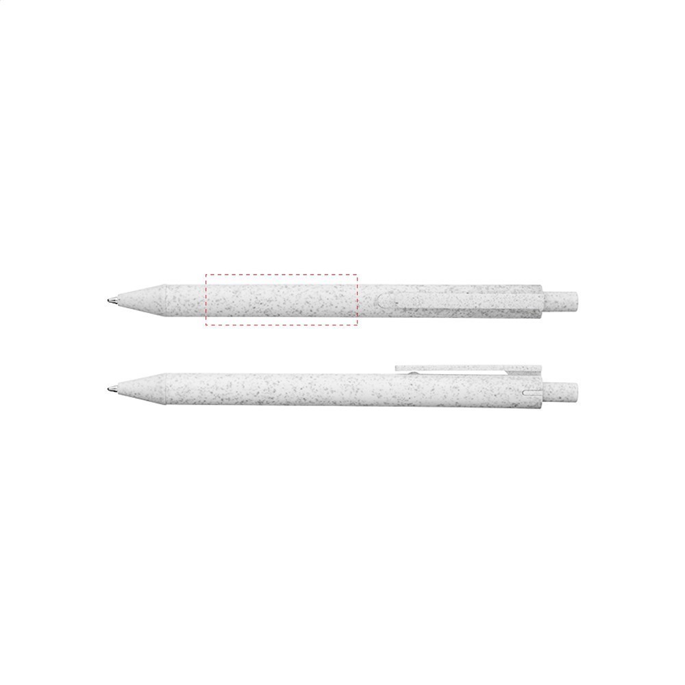 Blauschreibender Kugelschreiber, hergestellt aus 50% PP und 50% Weizenstroh. Griff, Clip und Druckknopf sind aus demselben Material gefertigt und der gesamte Kugelschreiber ist stilvoll in einer Farbe ausgeführt. Teilweise biologisch abbaubar.