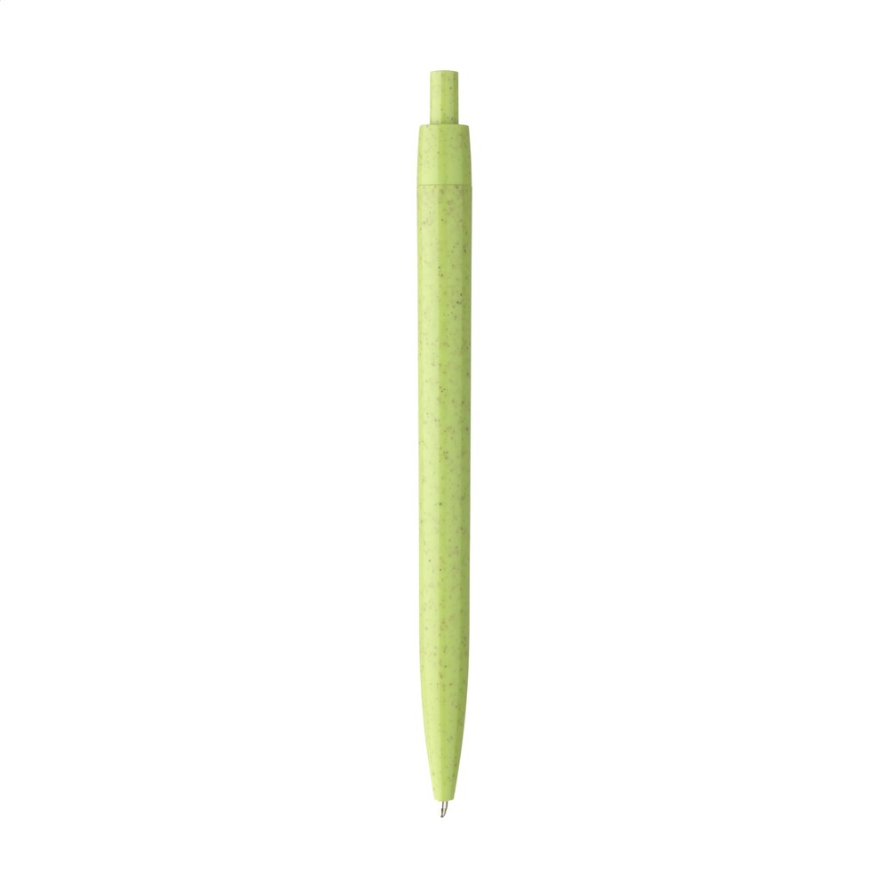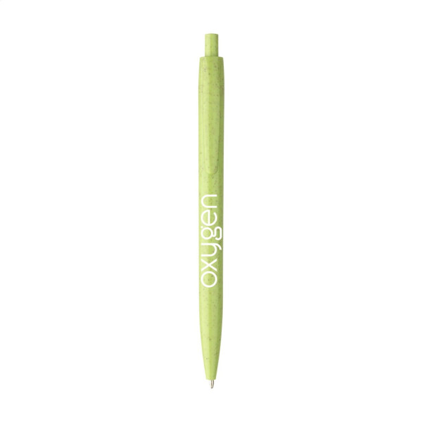Blauschreibender Kugelschreiber, hergestellt aus 60% Weizenstroh und 40% Kunststoff. Griff, Clip und Druckknopf sind aus demselben Material gefertigt und der gesamte Kugelschreiber ist stilvoll in einer Farbe ausgeführt.
