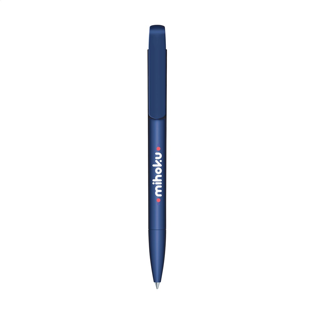 Blauschreibender Kugelschreiber der Marke Senator®. Hergestellt aus recyceltem Material. Dieser Kugelschreiber hat eine glatte, matte Oberfläche und einen großzügig bemessenen Clip/Druckknopf. Das Gehäuse ist neben dem Clip mit dem kleinen Symbol für „aus recyceltem Material“ bedruckt. Aufgrund des verwendeten Recyclingmaterials kann es zu leichten Unregelmäßigkeiten in der Oberfläche des Kugelschreibers kommen. Made in Germany.