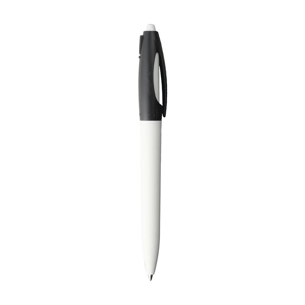 Blauschreibender Kugelschreiber mit modernem, farbigem Clip der Marke Stilolinea®. Das Gehäuse besteht aus PLA, einem aus Pflanzenfasern gewonnenen Material: vollständig biologisch abbaubar und kompostierbar und zu 100% aus erneuerbaren Quellen gewonnen. Mit „From Plants“ im Hochrelief an der Seite des Clips. Hergestellt in Italien.