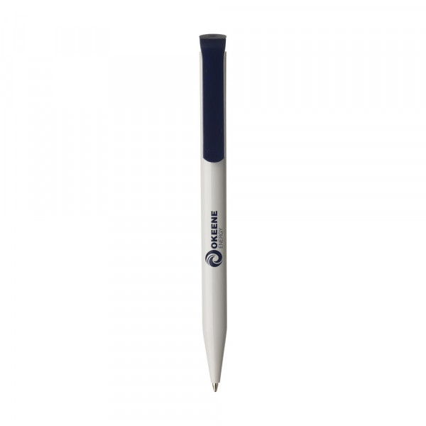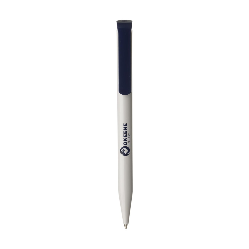 Blauschreibender Kugelschreiber der Marke Senator®. Mit poliertem Gehäuse und großem, auffallendem Clip und Druckknopf. Made in Germany.