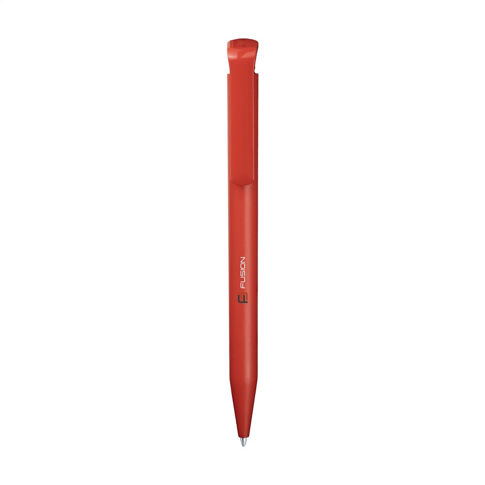 Blauschreibender Kugelschreiber der Marke Senator®. Hergestellt aus recyceltem Material. Dieser Kugelschreiber hat eine glatte, matte Oberfläche und einen großzügig bemessenen Clip/Druckknopf. Das Gehäuse ist neben dem Clip mit dem kleinen Symbol für „aus recyceltem Material“ bedruckt. Aufgrund des verwendeten Recyclingmaterials kann es zu leichten Unregelmäßigkeiten in der Oberfläche des Kugelschreibers kommen. Made in Germany.