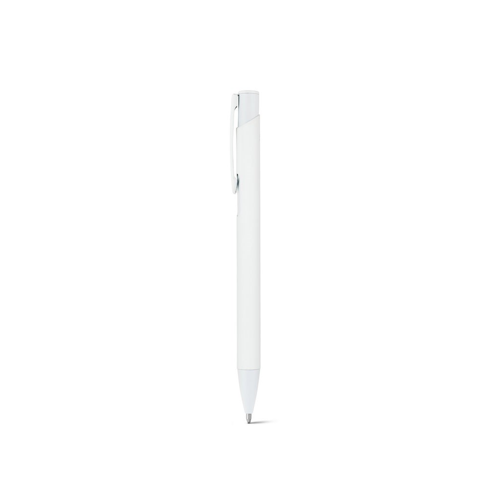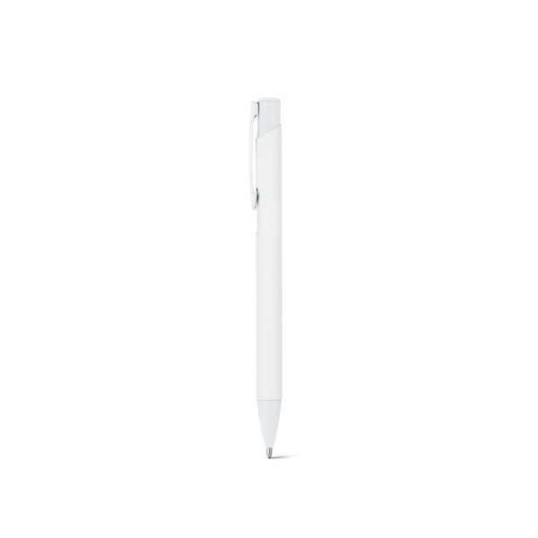 Blauschreibender Kugelschreiber aus recyceltem Aluminium (100% rAL) mit Gummibeschichtung. Alle Bestandteile sind in der gleichen Farbe. ø10 x 136 mm