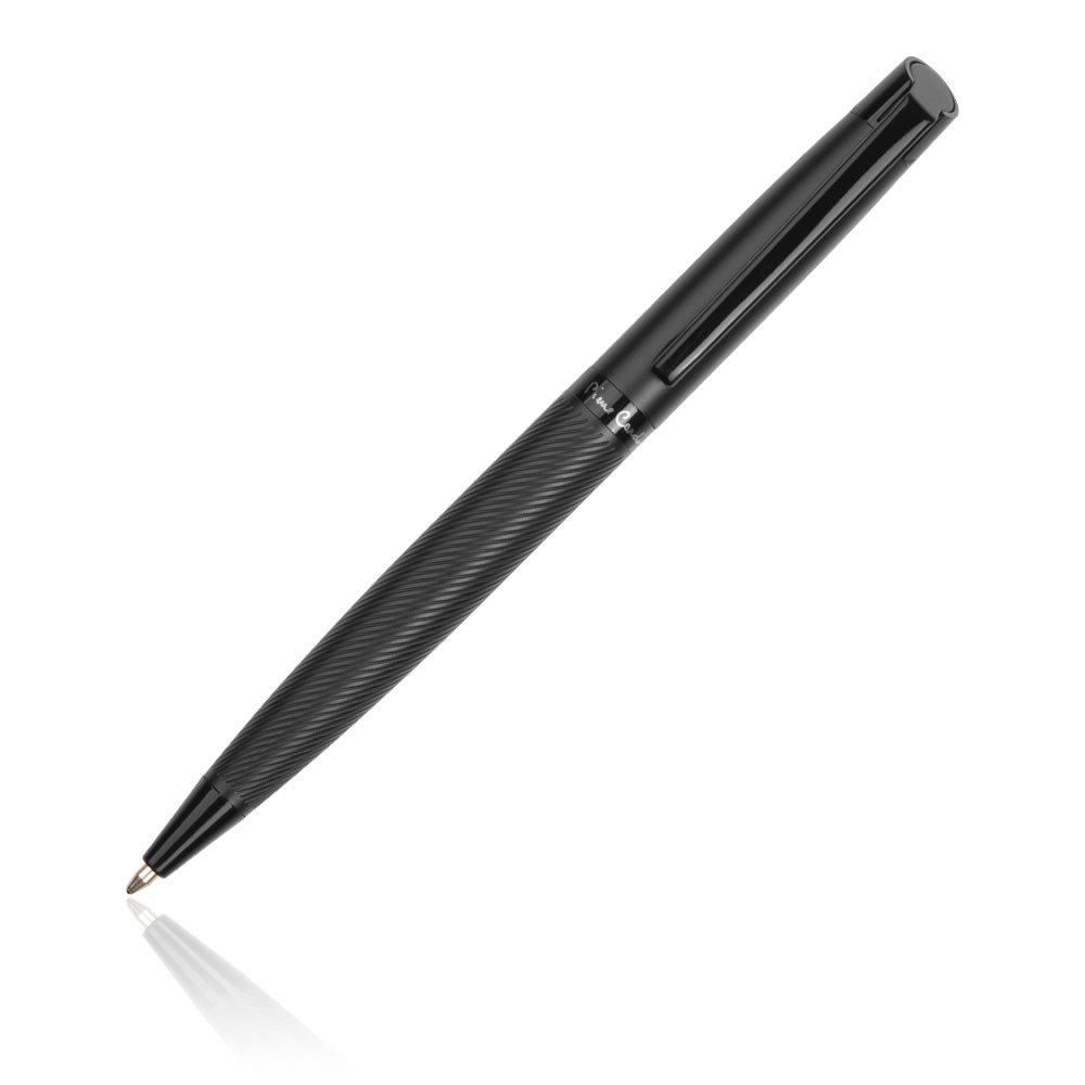 Luxuriöses Pierre Cardin Markenset aus DIN A5-Notizbuch und Kugelschreiber DENISE. Das Notizbuch ist in schwarz gestaltet, enthält 160 linierte Seiten mit einem Gewicht von 80 g und ein textiles Lesezeichen mit einem Pierre Cardin Metallanhänger. Auf der Rückseite des Blocks ist das Pierre Cardin- Logo eingeprägt. Der Metallkugelschreiber hat einen Drehmechanismus und der untere Teil des Kugelschreibers ist mit einem Strukturdesign versehen. Er enthält eine blaue Qualitätsmine mit einer 1 mm Spitze. Das Set ist in einer Pierre Cardin Geschenkbox verpackt und wird mit einem Echtheitszertifikat geliefert.