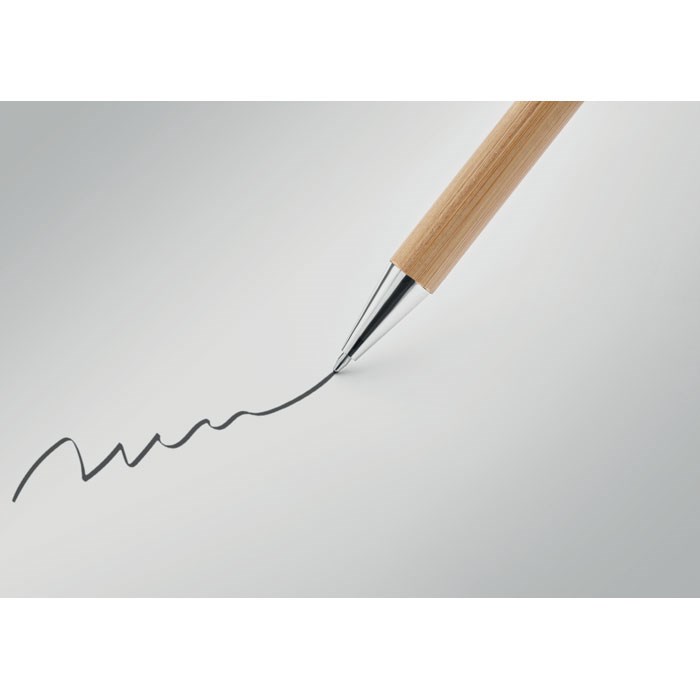 Drehkugelschreiber aus Bambus mit Details aus Metall. Blaue Tinte. Bambus ist ein natürliches Produkt, es kann daher zu leichten Abweichungen in Farbe, Dekor und Maßen kommen. FSC®-certified | FSC 100%, N5.7, FSC-C213206