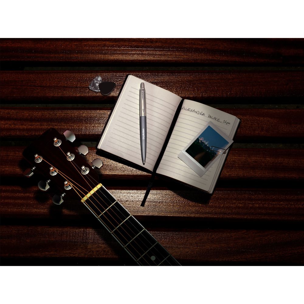 Blau schreibender Kugelschreiber der Marke Parker. Mit Kunststoffhülle. Oberteil, Druckknopf und Pfeilclip bestehen aus Edelstahl. Diese XL-Ausführung bietet alle Merkmale des ikonischen Jotter, ist jedoch größer gestaltet. Länge und Durchmesser sind um 7% erhöht, was ein angenehmes Schreibgefühl für alle bietet, die einen größeren Kugelschreiber bevorzugen. Ausgestattet mit einer Parker-Mine für ein geschmeidiges Schreibgefühl. Ein stilvolles und funktionales Schreibgerät, perfekt für den täglichen Gebrauch. Geliefert in einer Parker-Geschenkbox. Hergestellt in Europa.