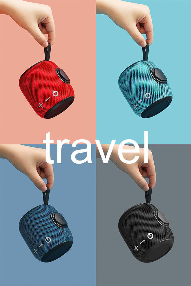 Die 1200 mAh Batterie sorgt für langen Musikgenuss – in vier modernen Farben: Schwarz, Dunkelblau, Hellblau und Rot. Für Werbeanbringung stehen Lasergravur und Siebdruck zur Verfügung.
