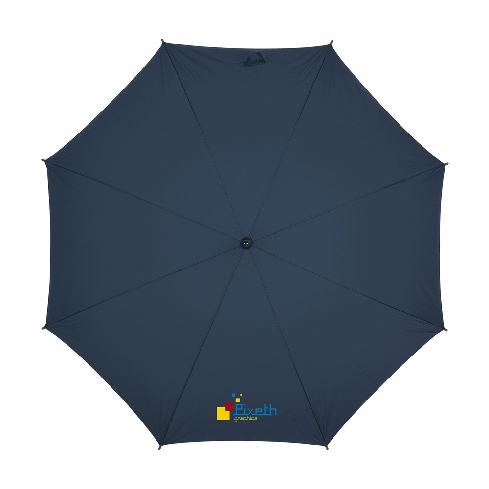Regenschirm mit 190T Polyesterbespannung, Metallgestell, Holzschaft und -griff und Klettverschluss. mehr