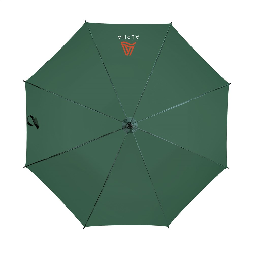 Regenschirm mit automatischer Teleskopöffnung. 190T Polyester-Bespannung, Fiberglasrahmen, Metallschaft, Klettverschluss, gebogenem, klassischem Handgriff, der durch die luxuriöse Gummiummantelung gut in der Hand liegt.