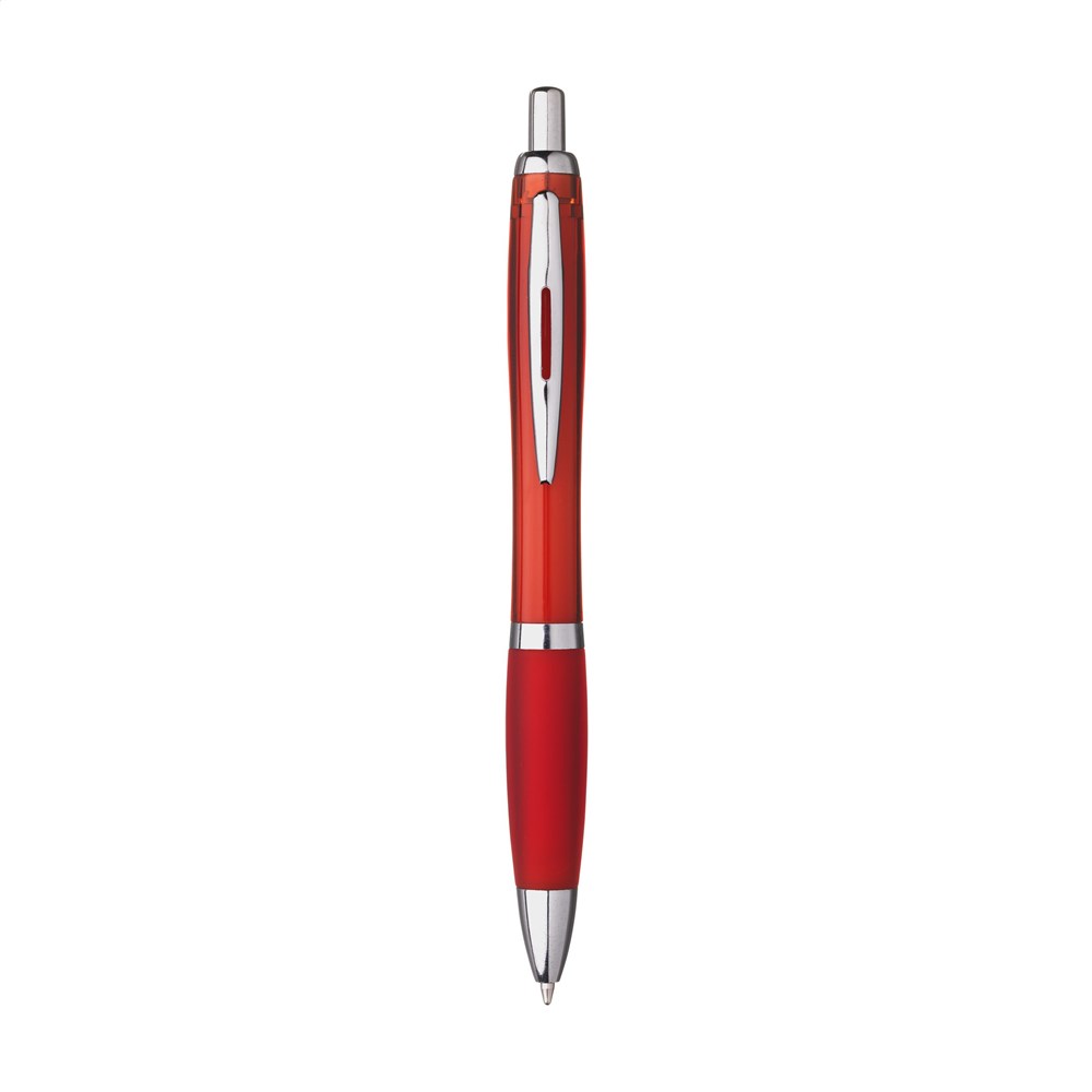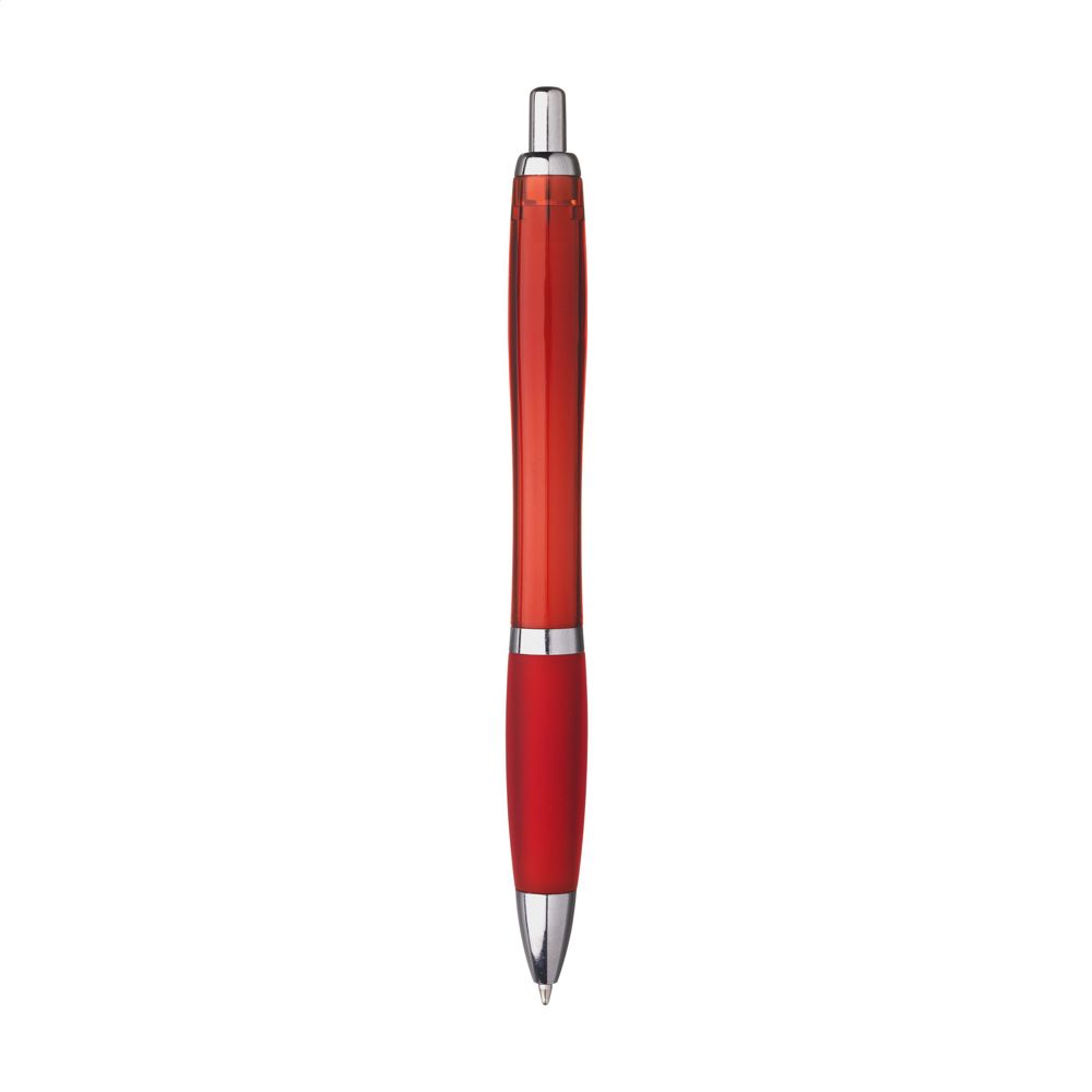 Blauschreibender Kugelschreiber. Das solide Gehäuse besteht aus recyceltem ABS. Mit Druckknopf, Metallclip und silberfarbenen Akzenten. RCS-zertifiziert. Recyceltes Material insgesamt: 78%.