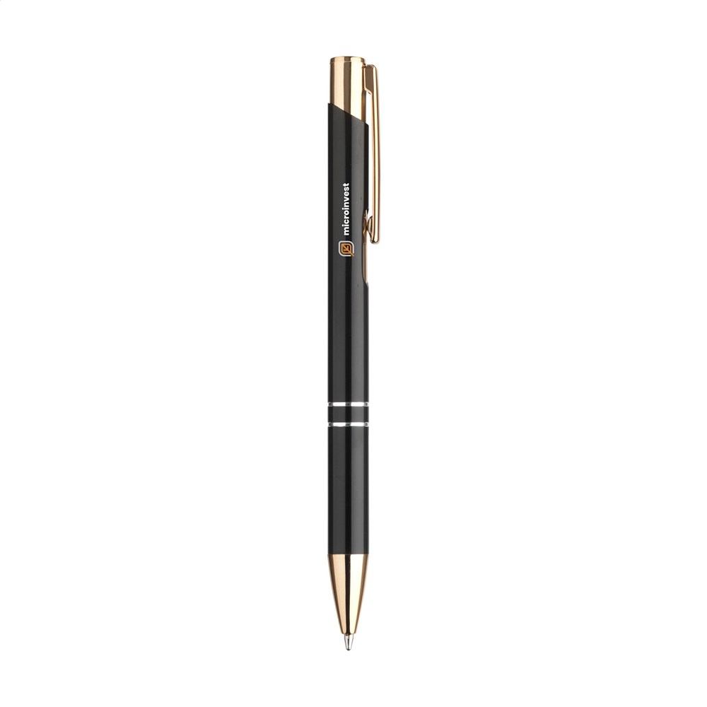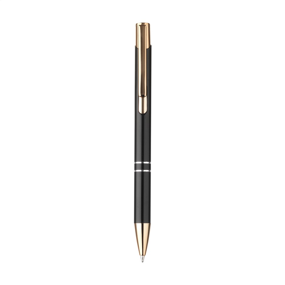 Blauschreibender Kugelschreiber aus recyceltem Aluminium mit einem stabilen, roségoldenen... mehr