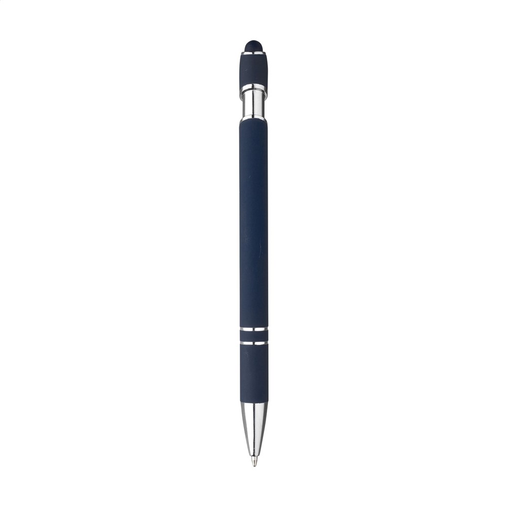 Schlanker, blauschreibender Kugelschreiber mit Aluminiumgriff. Ausgestattet mit einem gummierten Soft-Touch-Finish und einer Gummi-Spitze. Robuster Metallclip und Kunststoffspitze. ACHTUNG: Digitaldruck auf dem weißen Kugelschreiber ist nicht möglich.