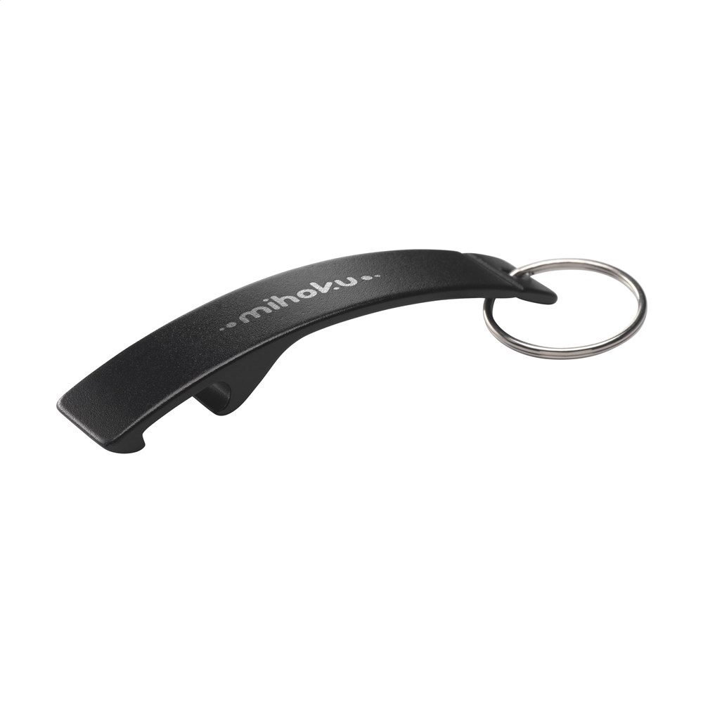 Schlüsselanhänger mit leichtem Flaschenöffner aus 100% recyceltem Aluminium. GRS-zertifiziert. Durch die Verwendung von recyceltem Aluminium kommt eine geringere Menge an neuen Rohstoffen zum Einsatz. Das bedeutet weniger Energieverbrauch und weniger Wasserverbrauch.