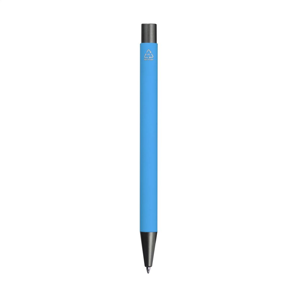 Blauschreibender Kugelschreiber aus recyceltem Aluminium. Das Gehäuse ist mit einer schönen... mehr