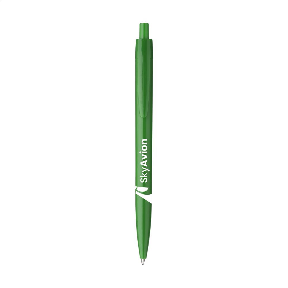 Blauschreibender Kugelschreiber mit einteiligem Gehäuse. Sehr gut geeignet für einen großzügigen Aufdruck.