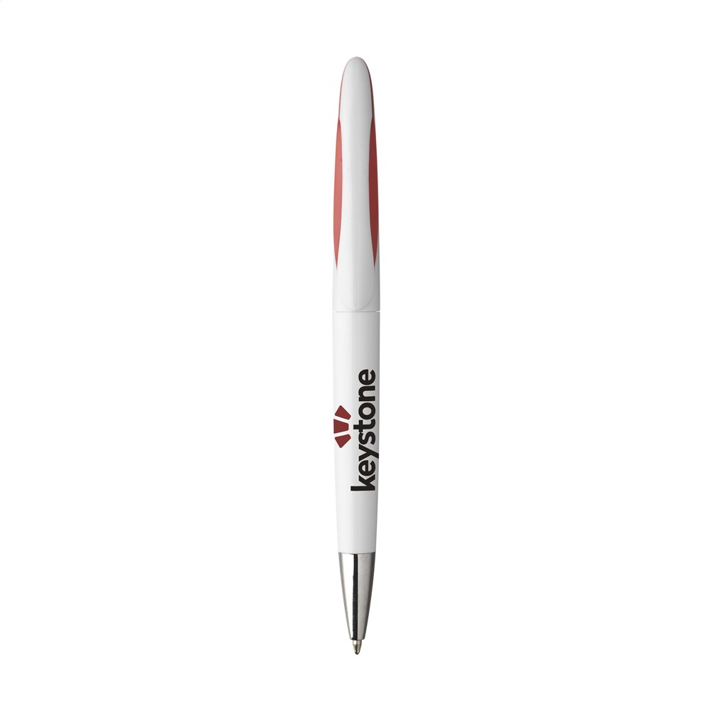 Blauschreibender Kugelschreiber. Das Gehäuse besteht zu 100% aus recyceltem ABS. Mit formschöne Clip und Dreh-Klicksystem. GRS-zertifiziert.