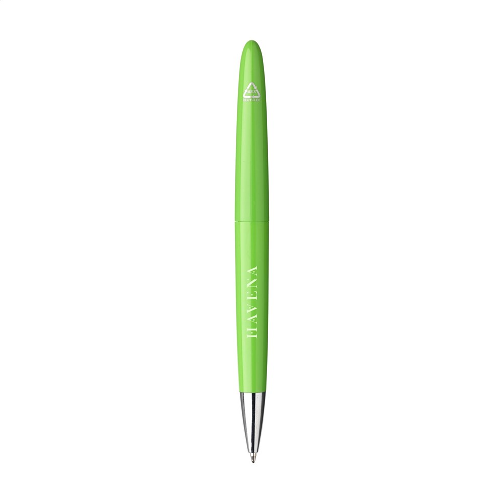 Blauschreibender Kugelschreiber. Das Gehäuse besteht zu 100% aus recyceltem ABS. Mit formschöne Clip und Dreh-Klicksystem. GRS-zertifiziert.