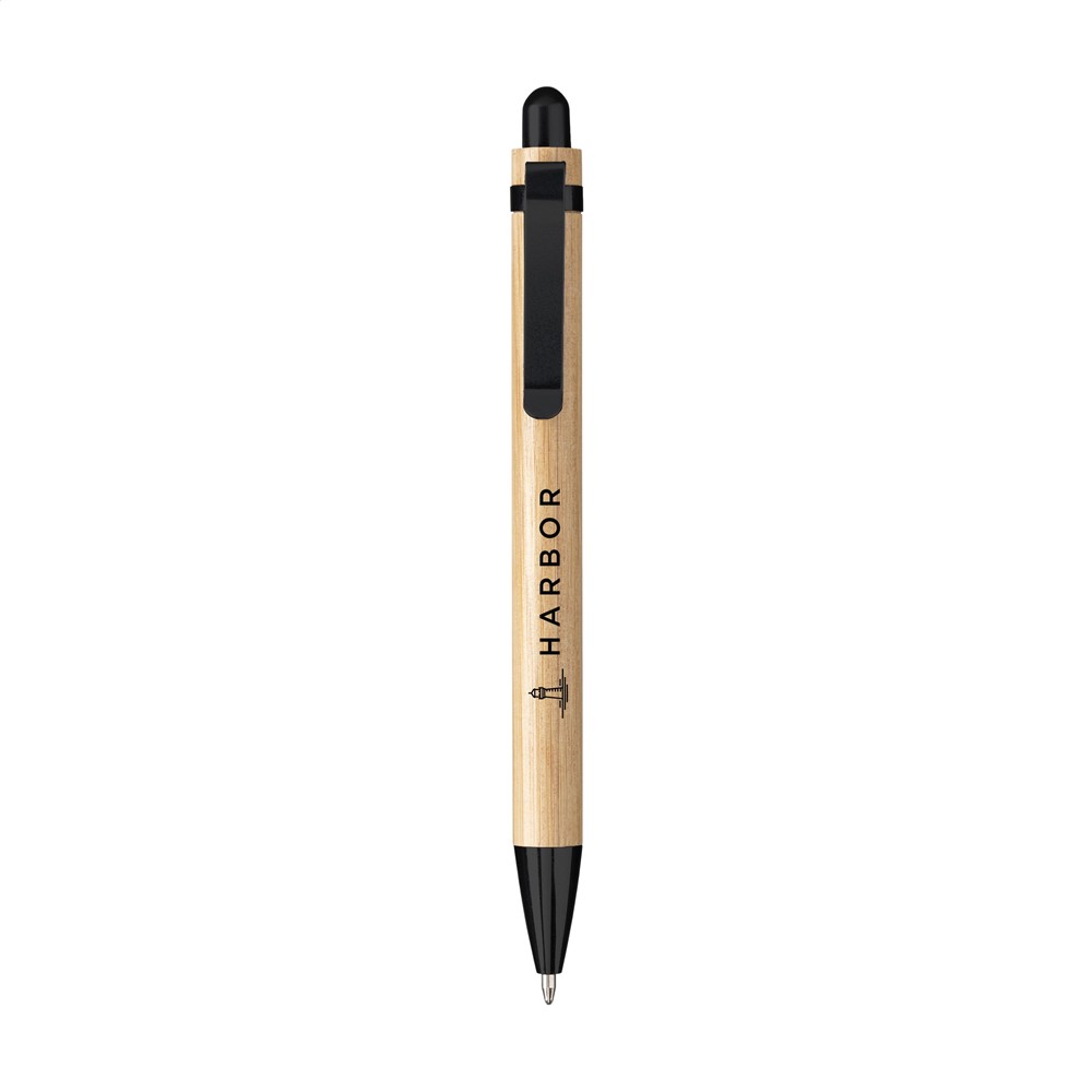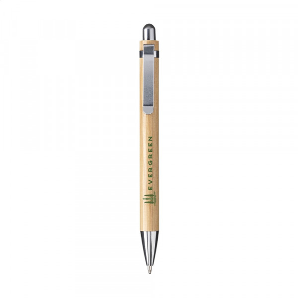 Blauschreibender oder schwarzschreibender Kugelschreiber mit Bambusgehäuse und Metall-Clip. mehr