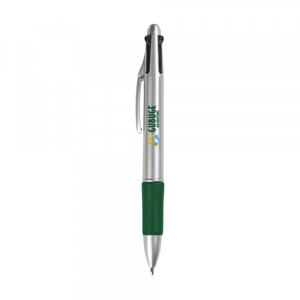 4-Farbenkugelschreiber mit grifffestem, gummierten Vorderteil. Ausgestattet mit blauer, grüner, roter und schwarzer Mine.