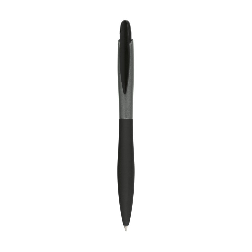 Blauschreibender, schlanker Kugelschreiber mit grifffestem, gummiertem Vorderteil. mehr