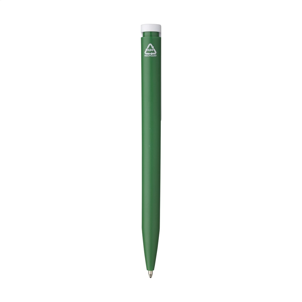 Blauschreibender Kugelschreiber mit einem Gehäuse aus 100% recyceltem ABS. Der Clip/Druckknopf ist mit einem auffälligen farblichen Akzent gestaltet und bietet Platz für einen großzügigen, digitalen Vollfarbaufdruck. GRS-zertifiziert.