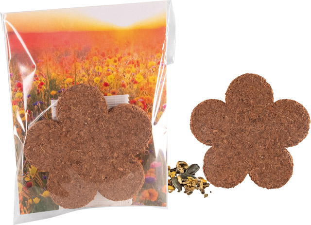 Inhalt: Erdtablette Blume, Samen: bunte Blumenmischung