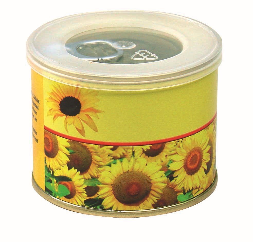 Sonnen-Dose, Ø 73x58 mm, Zwergsonnenblume, inkl. Digitaldruck 1-4/0 c
