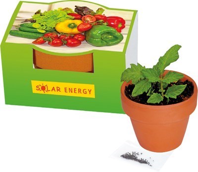 Gemüse zum Naschen - Im kleinen Tontopf kann der Samen der Cocktailtomaten-Pflanze angezüchtet werden. Das Standardmotiv der Banderole bietet viel Platz für Ihre Werbeanbringung ab 250 Stück. Auch eine eigene Gestaltung der Banderole ist ab 250 Stück möglich.