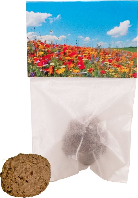 Die handgefertigte Tonkugel mit Samenfüllung ist ein wahres Naturwunder. Einfach auf Blumenerde setzen und wässern. Nach kurzer Zeit sprießen die ersten grünen Spitzen und vielleicht wird auch schon bald daraus ein blühender Garten für Mensch und Tier. Der Header im Standardmotiv ist für Ihre Werbebotschaft vorgesehen. Ebenfalls ab 250 Stück ist eine eigene Gestaltung möglich.