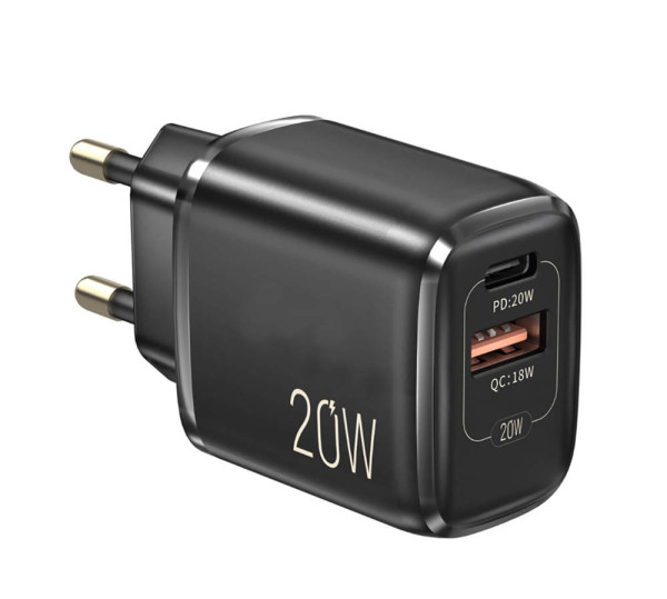 Der kompakte EU-Steckdosenadapter mit 20W Leistung ist die perfekte Ladelösung für Smartphones, Tablets und andere USB-Geräte. Ausgestattet mit einem USB-C Port (PD) und einem USB-A Port (QC3.0) lädt er zwei Geräte gleichzeitig – sicher, schnell und platzsparend.