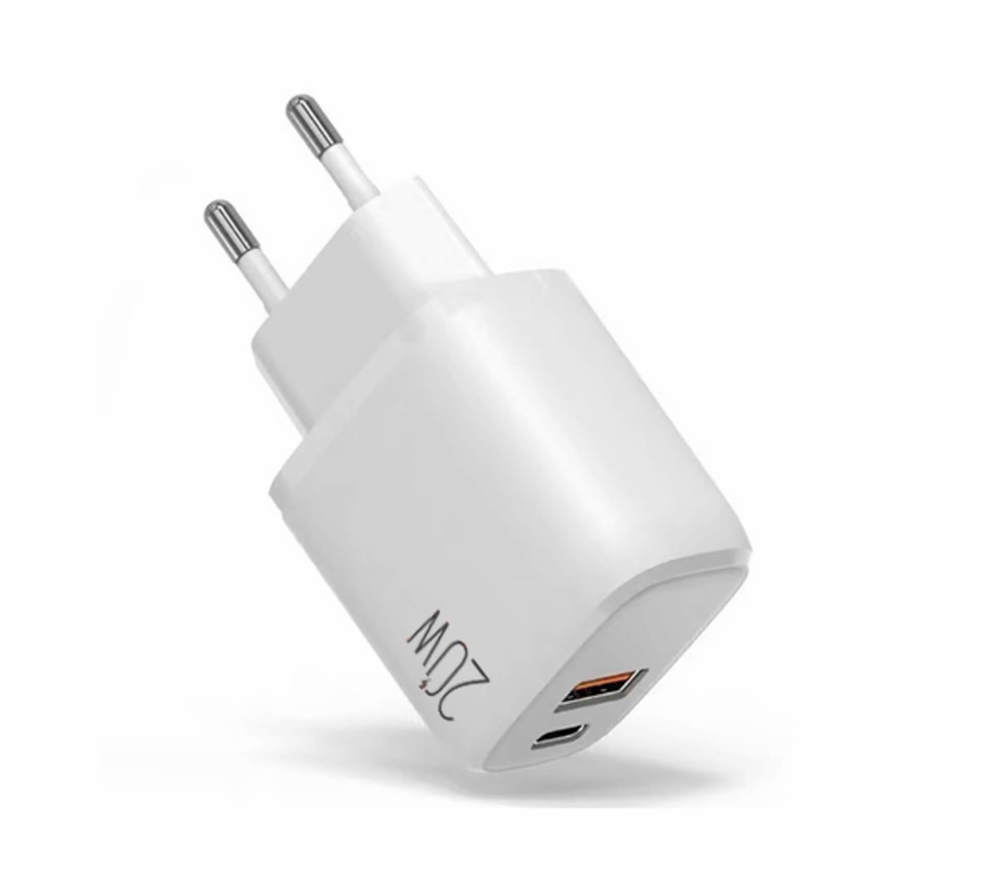 Der kompakte EU-Steckdosenadapter mit 20W Leistung ist die perfekte Ladelösung für Smartphones, Tablets und andere USB-Geräte. Ausgestattet mit einem USB-C Port (PD) und einem USB-A Port (QC3.0) lädt er zwei Geräte gleichzeitig – sicher, schnell und platzsparend.